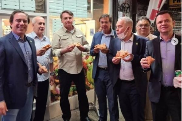 O presidente Jair Bolsonaro (sem partido), acompanhado de alguns ministros, deixou o hotel em que estava hospedado, neste domingo (19/9), para comer em uma pizzaria de Nova York, nos Estados Unidos.Nova York exige comprovante de imunização contra a Covid-19 em ambientes internos, como restaurantes. Como o chefe do Executivo brasileiro ainda não foi vacinado contra a doença, não pôde ficar na área interna do estabelecimento e precisou comer na calçada.