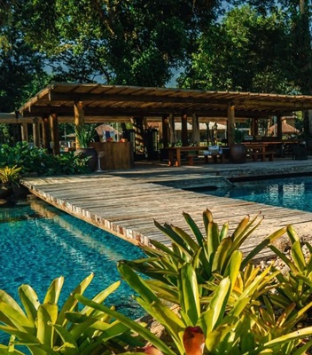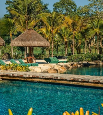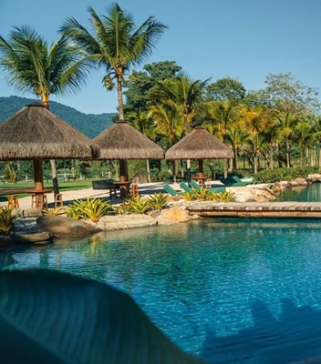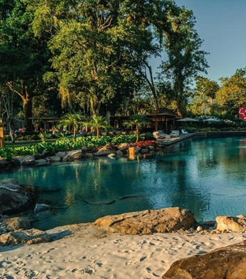 Com mil metros quadrados, o lago se destaca pelas águas cristalinas e paisagismo tropical. O ambiente foi projetado para ser um refúgio exclusivo dentro da propriedade, que ainda conta com campo de futebol, áreas de convivência e heliponto.
