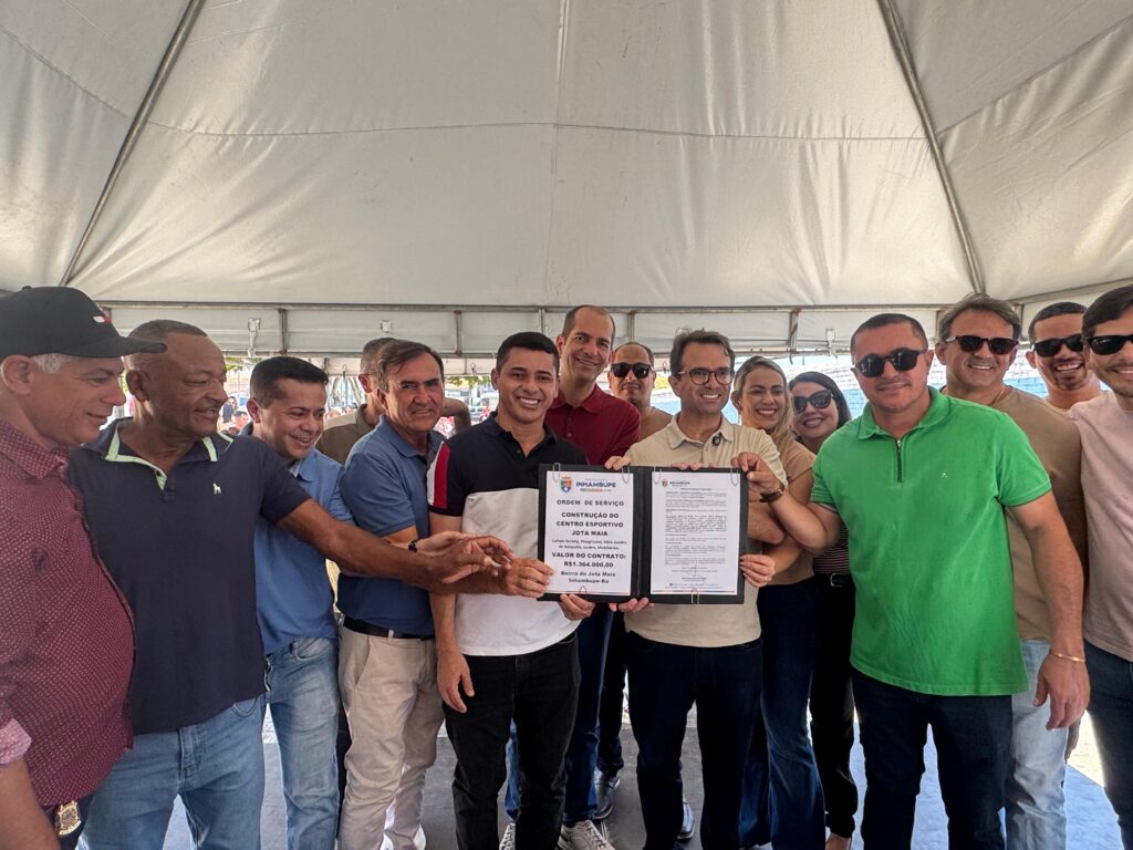 Na manhã deste domingo, 19 de outubro, o município de Inhambupe deu mais um passo importante no incentivo ao esporte e ao lazer. Em um ato simbólico realizado às 9h, foi assinada a ordem de serviço para a construção do Espaço Esportivo Jota Maia, um projeto que promete transformar a área em um ponto de convivência, prática esportiva e valorização da comunidade local. O novo espaço será moderno e contará com uma estrutura adequada para diversas modalidades esportivas, inclusive com iluminação que permitirá o uso noturno. O investimento representa mais um avanço na infraestrutura urbana e na valorização dos espaços públicos de Inhambupe.