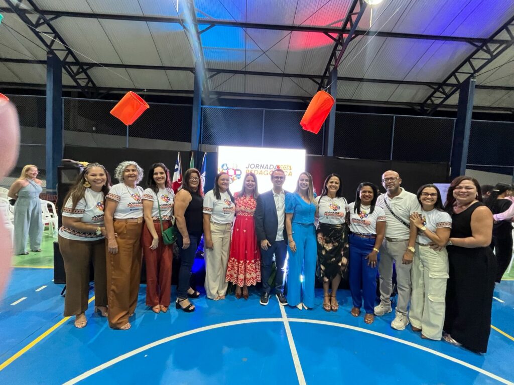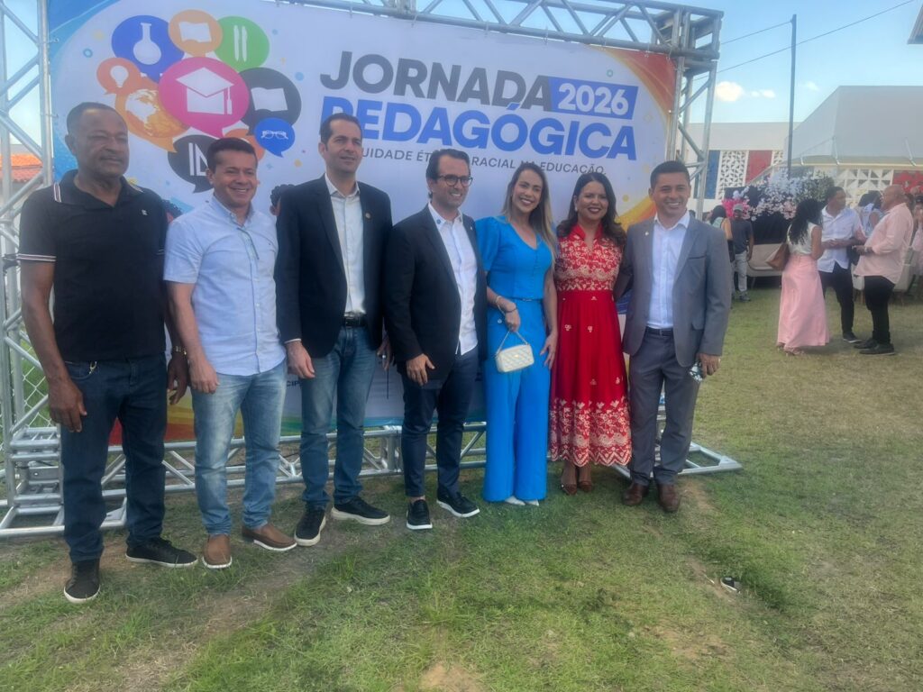 Na tarde desta terça-feira, 10 de fevereiro, a Secretaria Municipal de Educação de Inhambupe promoveu a abertura oficial da Semana Pedagógica 2026, reunindo professores, gestores, coordenadores e demais profissionais da educação no Colégio Simone Nery. O evento teve como tema “Equidade étnico-racial na educação” e foi marcado por momentos de reflexão, diálogo e fortalecimento das políticas educacionais no município. A solenidade contou com a presença do prefeito Hugo de Leônidas, da primeira-dama e secretária de Assistência Social, Lorena Simões, do vice-prefeito Jeovan Vieira, do presidente da Câmara Municipal, Edilson Rocha, além de vereadores da base governista, secretários municipais, lideranças locais e representantes de entidades ligadas à educação.