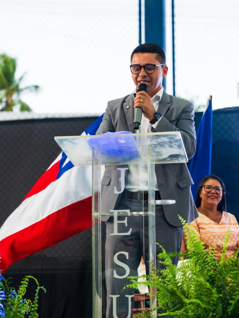 vice-prefeito Jeovan Vieira agradeceu o convite e cumprimentou professores, gestores, coordenadores, funcionários e toda a comunidade escolar. Ele destacou que a educação se constrói com parceria e compromisso coletivo, enfatizando que o tema equidade étnico-racial na educação é necessário e urgente, pois a escola vai além do ensino de conteúdos, formando cidadãos, fortalecendo identidades e promovendo o respeito. Jeovan também elogiou a presença de salas de Atendimento Educacional Especializado (AEE), reforçando o compromisso com uma educação inclusiva.