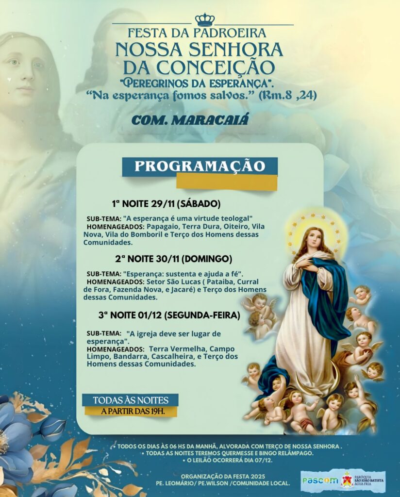 Participe da Festa da Padroeira Nossa Senhora da Conceição no Povoado de Maracaia