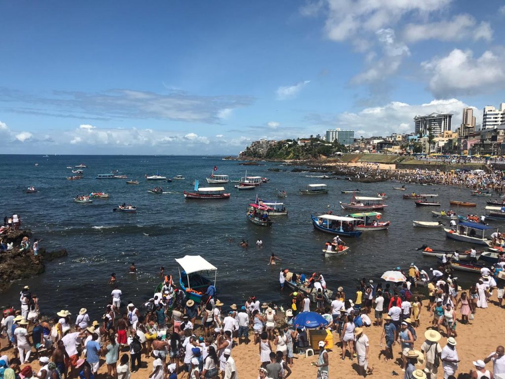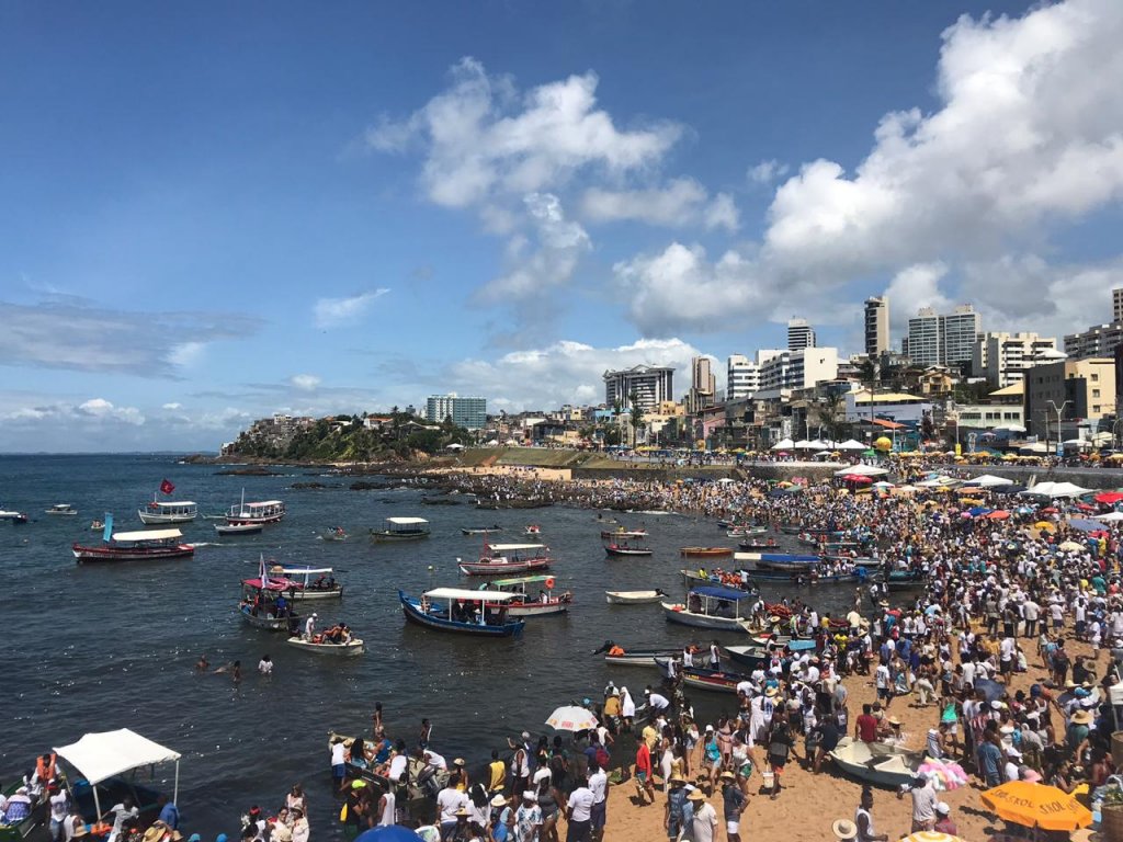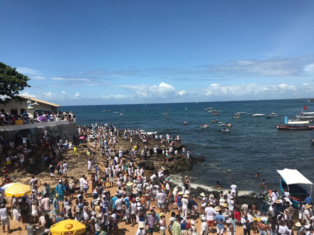 Seguente informações Bahia Notícias, Fiéis formam uma multidão na praia do Rio Vermelho para oferta de oferendas a Iemanjá  neste sábado (2). A praia do Rio Vermelho é o principal ponto para a entrega das oferendas na festa de Iemanjá.  Buscando graças ou apenas para agradecer à “Rainha do Mar”, os fiéis entregam flores, perfumes ou aproveitam para fazer orações na beira da praia.