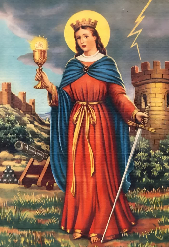 Santa Bárbara era filha de um homem rico, que o trancava em uma torre que que não convivesse em uma sociedade considerada corrupta. Mais velho, já na idade em que recebia pretendentes par lá casar, Bárbara decidiu dedicar-se ao cristianismo e foi denunciada às autoridades romanas pelo próprio pai. Ela foi torturada para que negasse Cristo e depois condenada à morte. Ela foi decapitada pelo próprio pai que logo foi atingido por um raio e também morreu. Seria a tempestade como a manifestação de Deus. Foi a sua resistência em não negar a sua fé que a fez santa na igreja católica. E a relação de Santa Bárbara com raios e trovões fez com ela fosse, no Brasil, sincretizada com Iansã. A devoção a Santa Bárbara tem uma longa história em Salvador. A imagem já esteve no Morgado de Santa Bárbara, no sopé da Ladeira da Montanha, de onde precisou ser retirada após um incêndio. Depois, foi acolhida na Igreja do Corpo Santo, até ser transferida para o Rosário dos Pretos, de onde partem os cortejos.