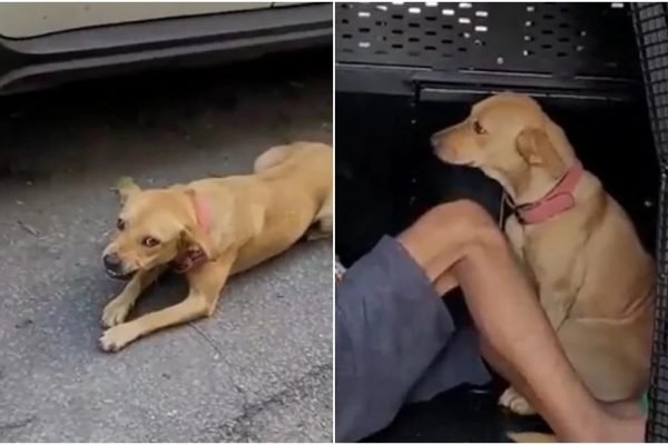 Segundo a PM, o homem foi preso em 6 de outubro após roubar a televisão de um restaurante da região. Vídeo gravado por uma das policiais que atuou na ocorrência mostra a cadelinha deitada “grudada” no carro. O animal fica visivelmente nervoso quando a agente tenta se aproximar para abrir a porta do veículo.